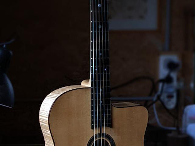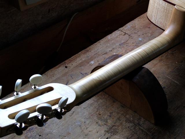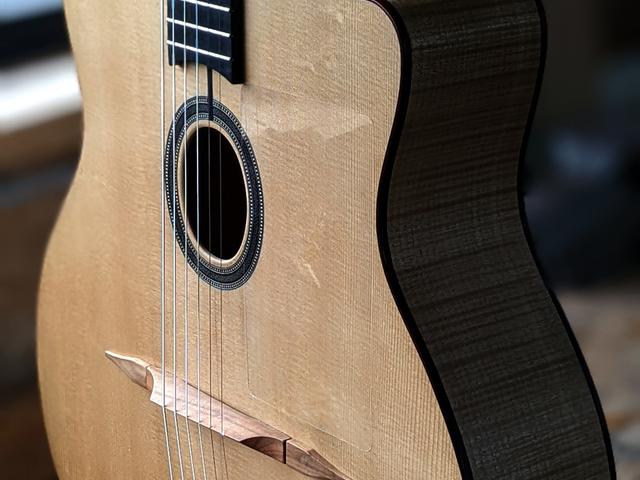 Guitare inspirée des modèles de Favino pour le barrage et la table, spécialement designée pour le jazz accoustique.