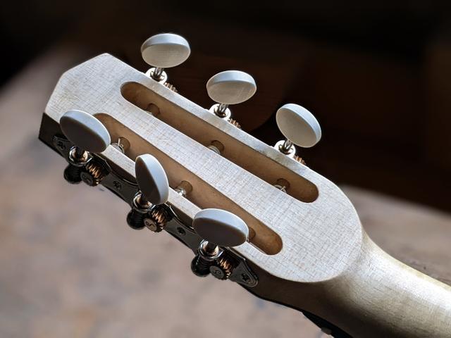- Tete & cordier: Noyer, le trussrod est accessible par un petit cache amovible manuellement;