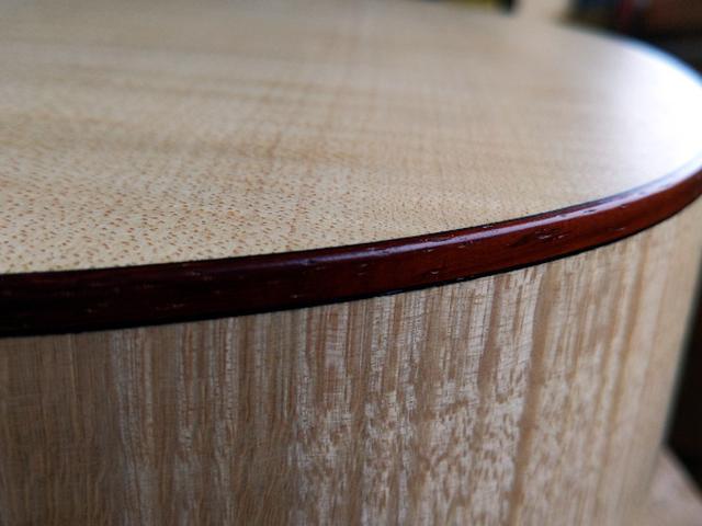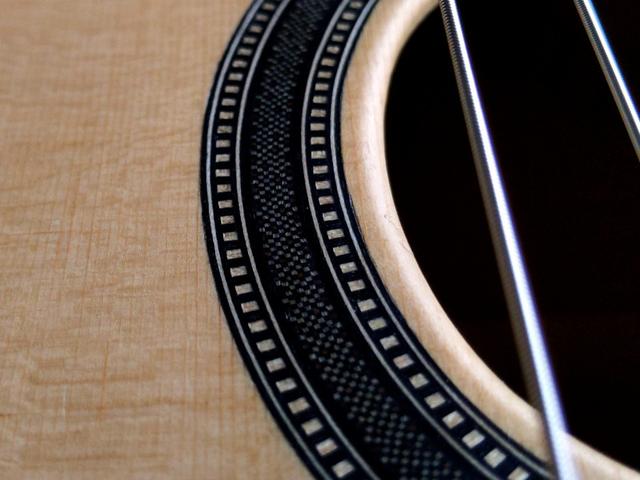 - Rosette: Marquetterie en érable, noyer et bois teinté;